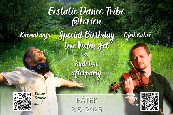 Srdečně Tě zveme na neopakovatelný večer s Ecstatic Dance, kde si tentokrát budeš moci užít tanec na narozeninový set od DJ KARMAKAAJA ve spojení s talentovaným houslistou CYRILEM KUBIŠEM. Živá hudba a housle dodají setu jedinečnou šťavnatost, organičnost a nečekaná spontaneitu.